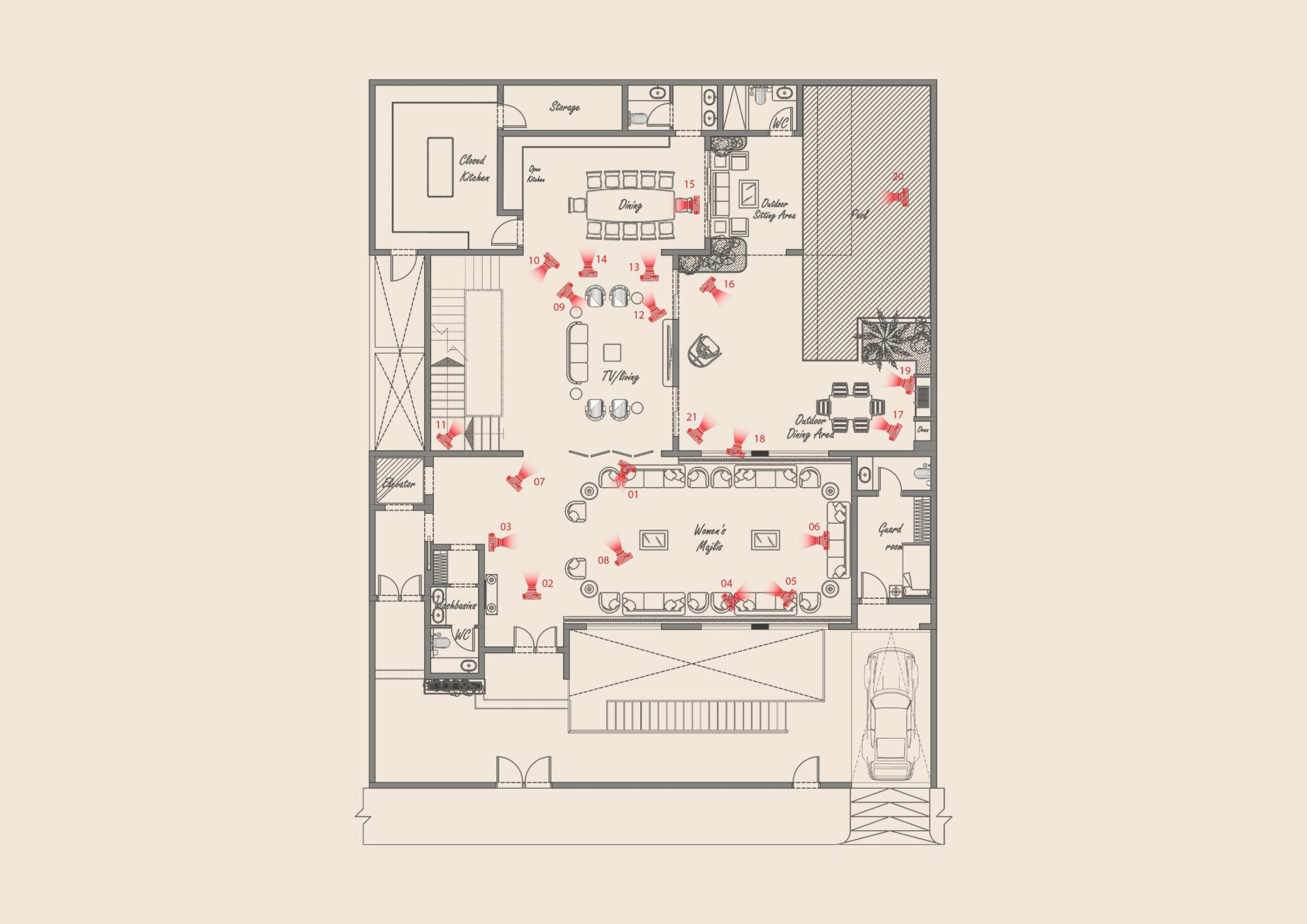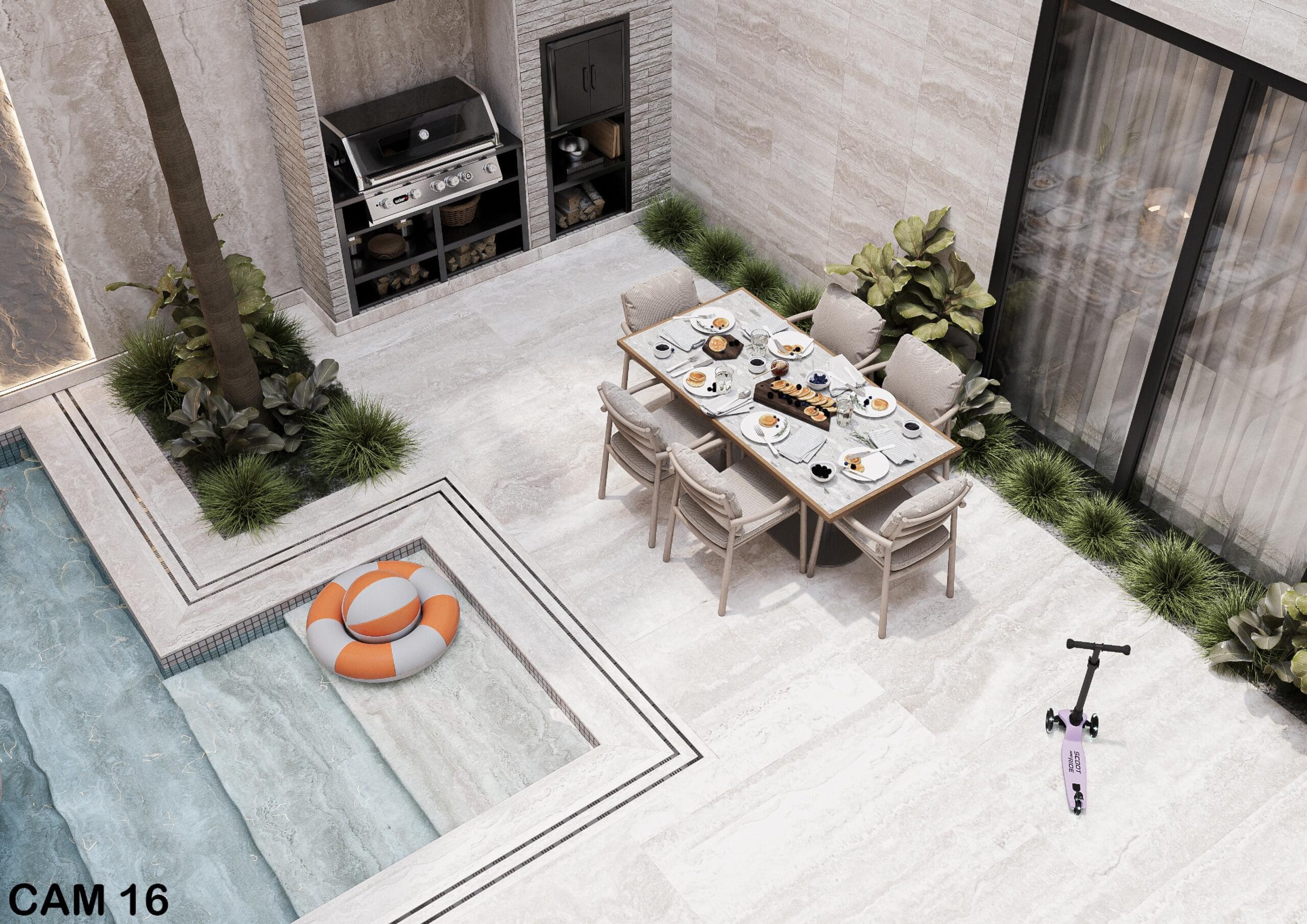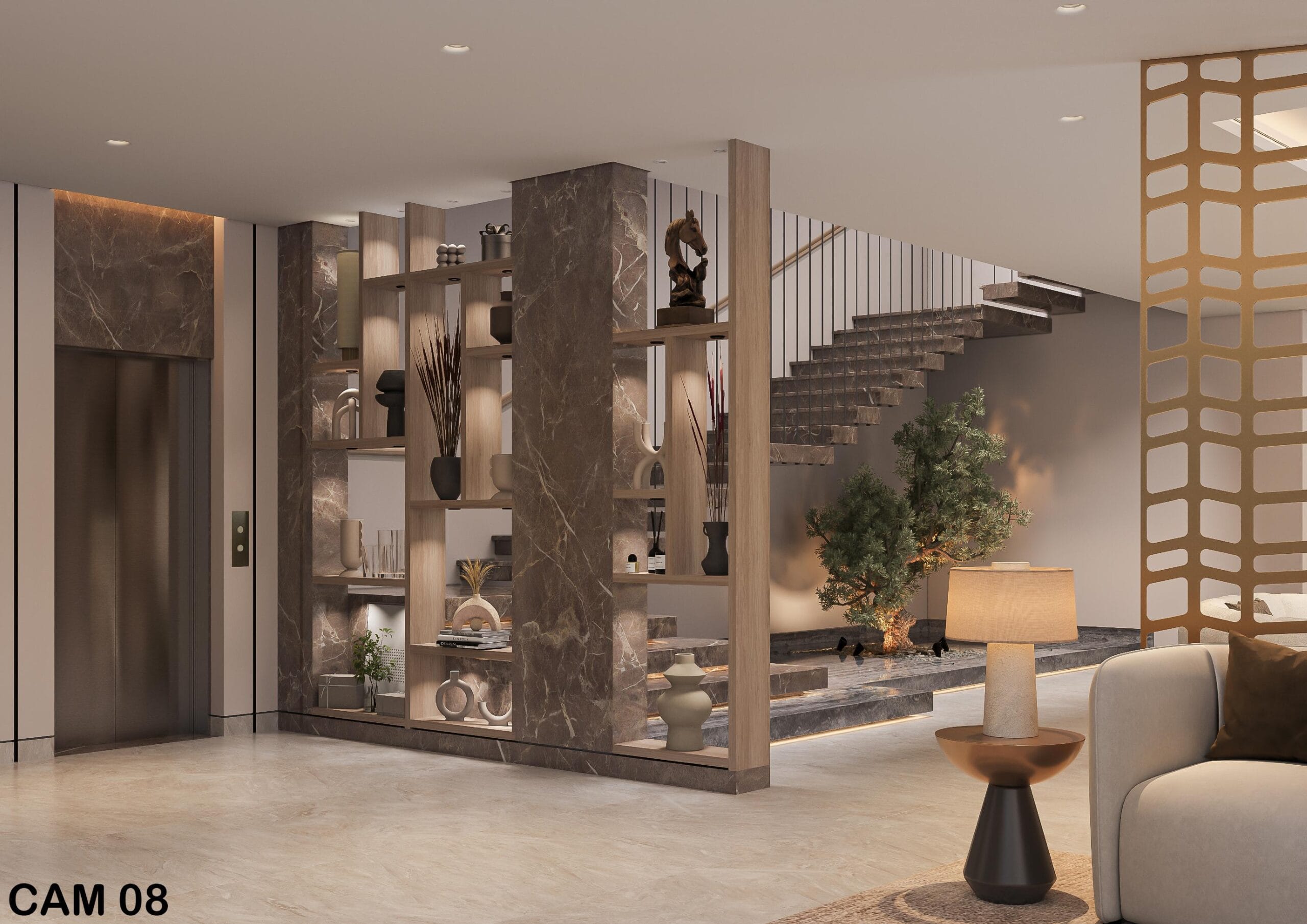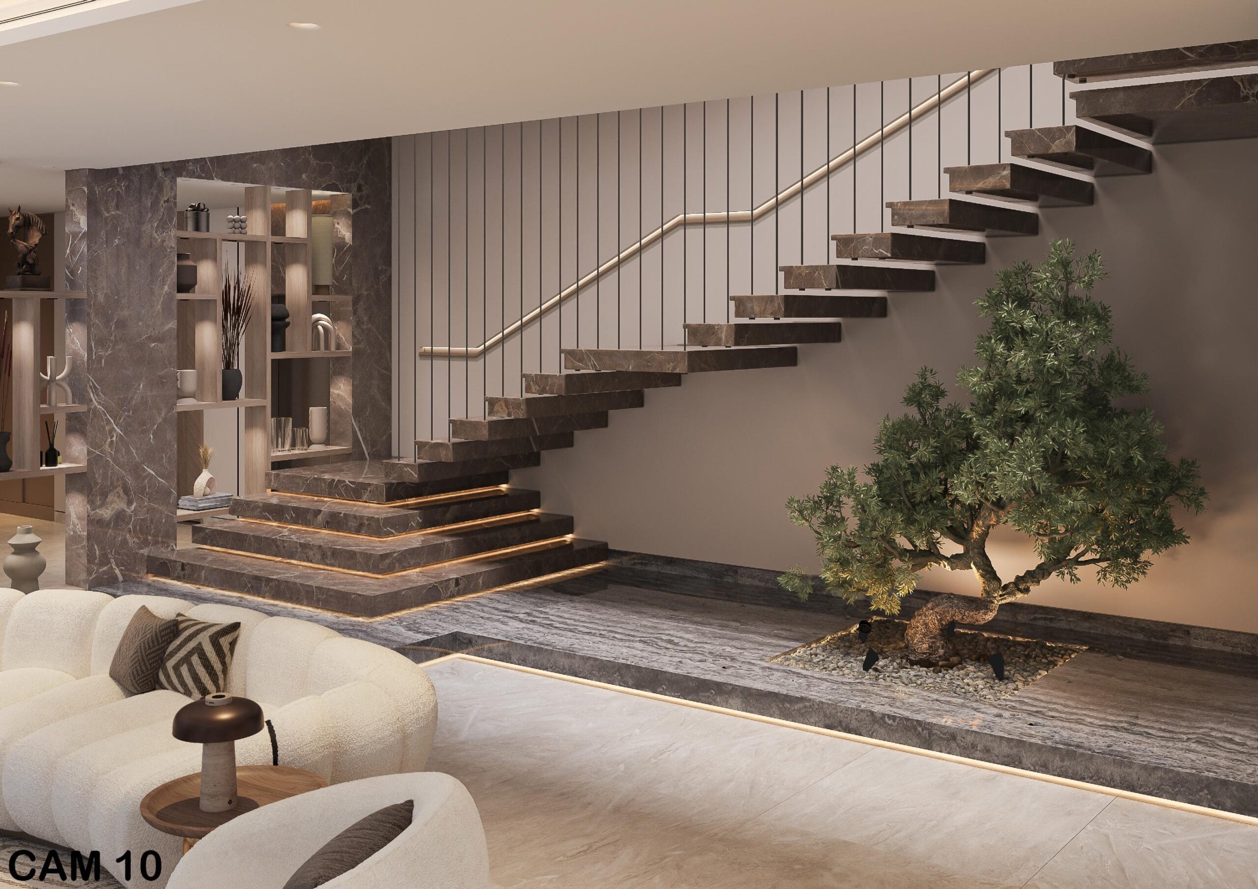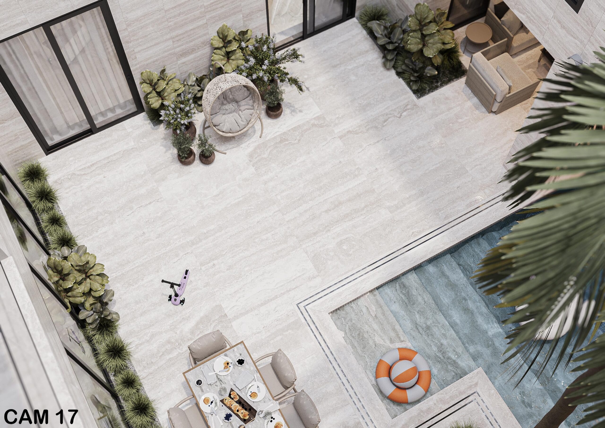 The H Villa exemplifies contemporary elegance, blending minimalist architecture with warm, inviting interiors. Its sleek exterior features clean lines, large glass windows, and a neutral color palette accented by black metal details.