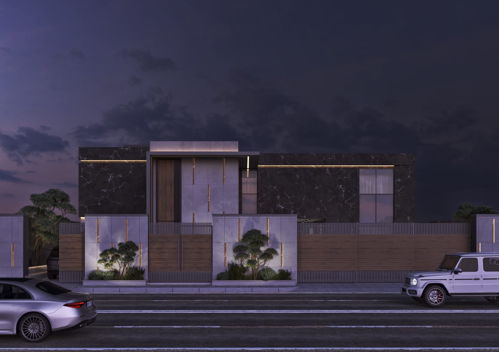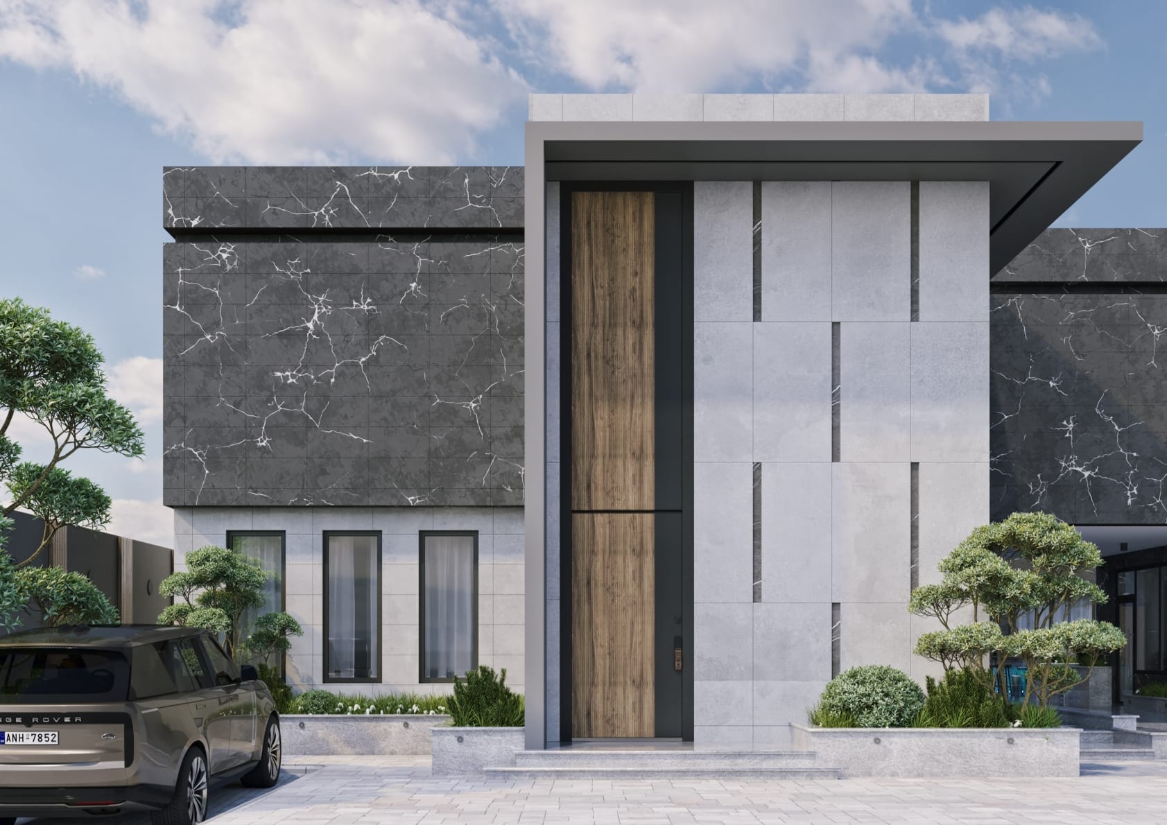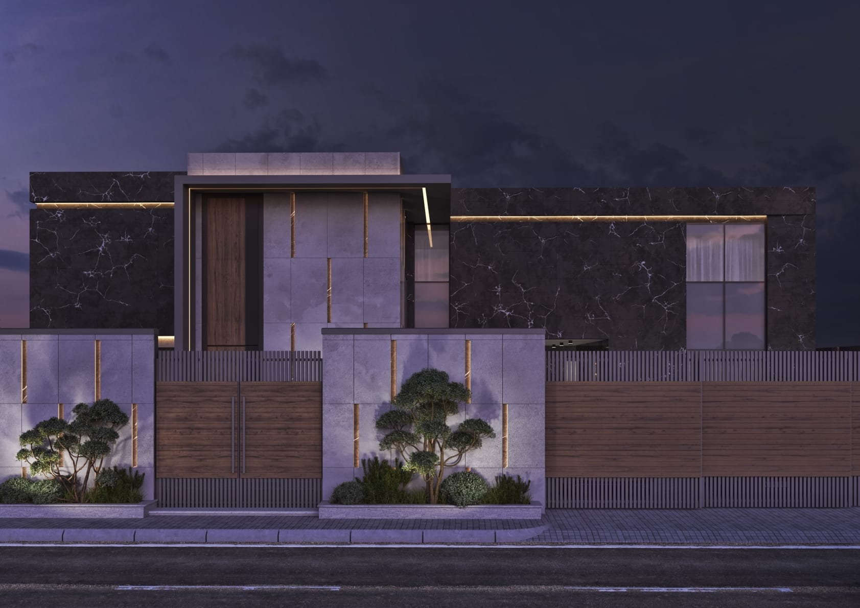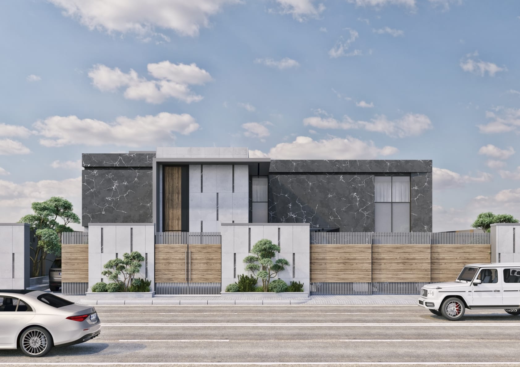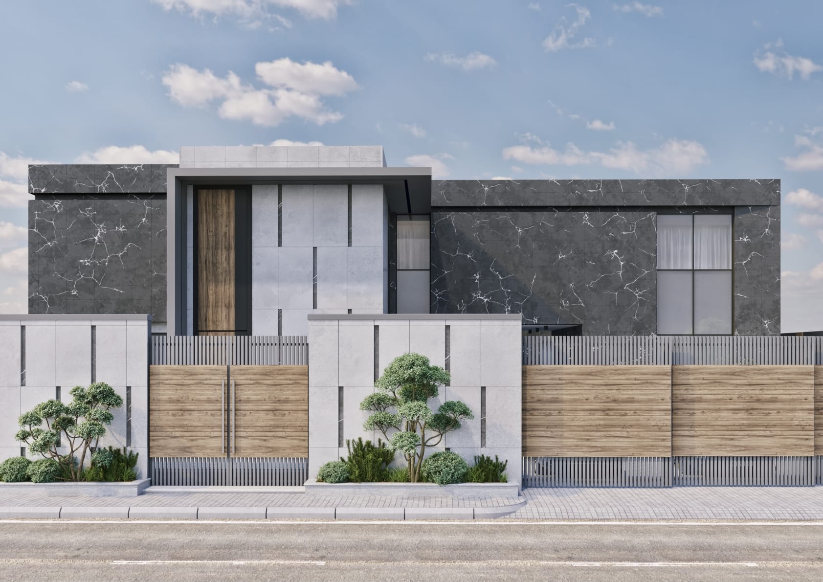 The marble gives the villa an elegant and fashionable touch, and the wood in some parts of the facade lends warmth and nature to the building as they are used with amazing harmony throughout the building's exterior.