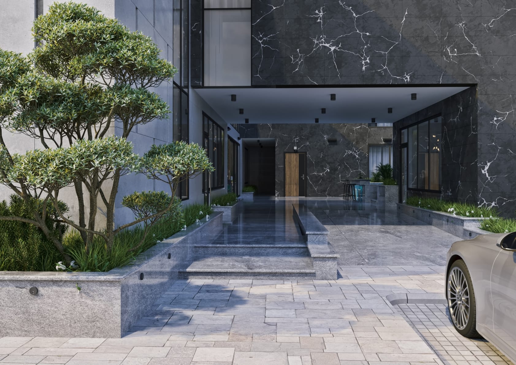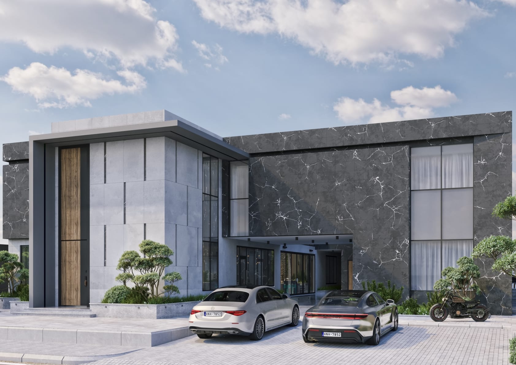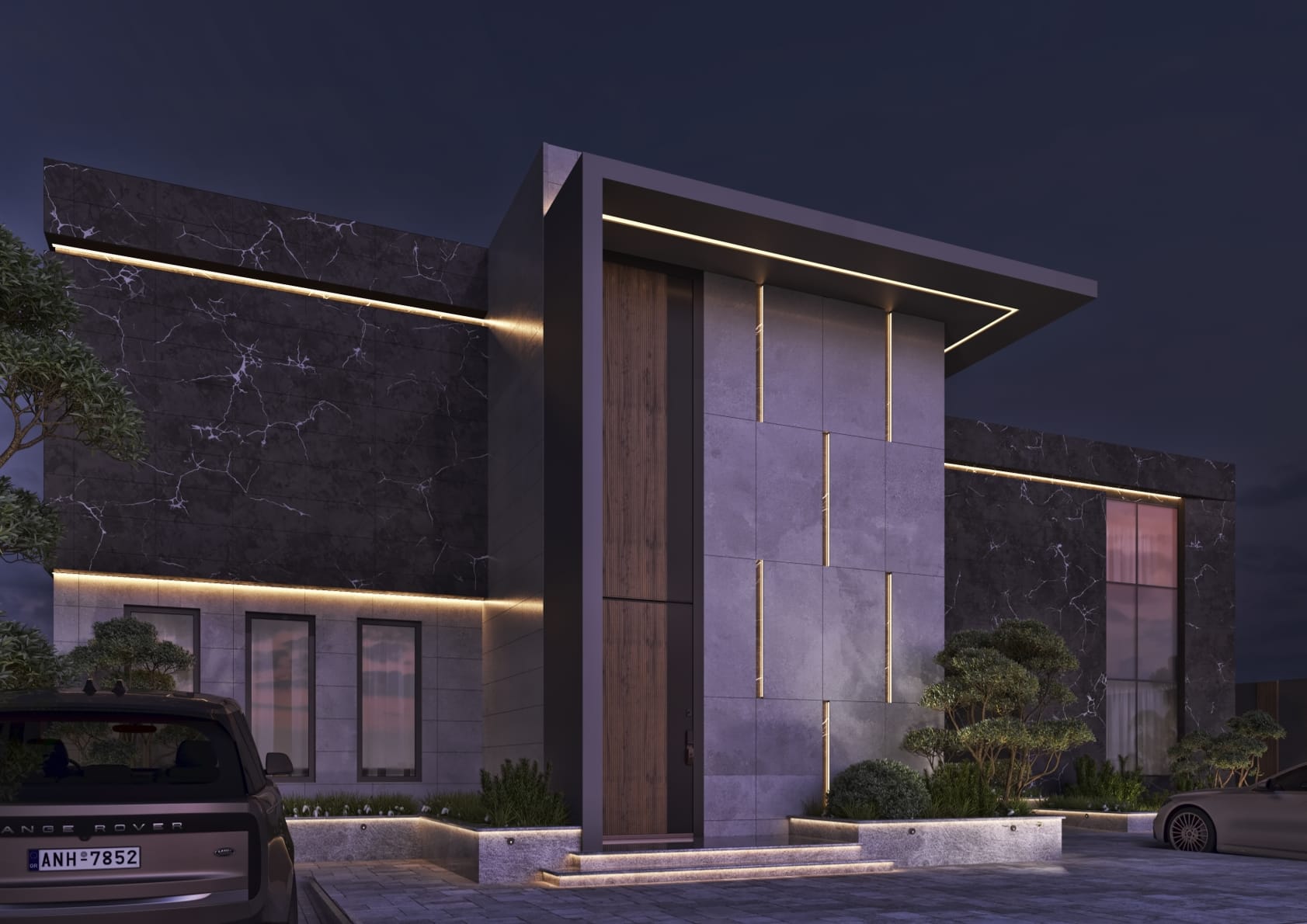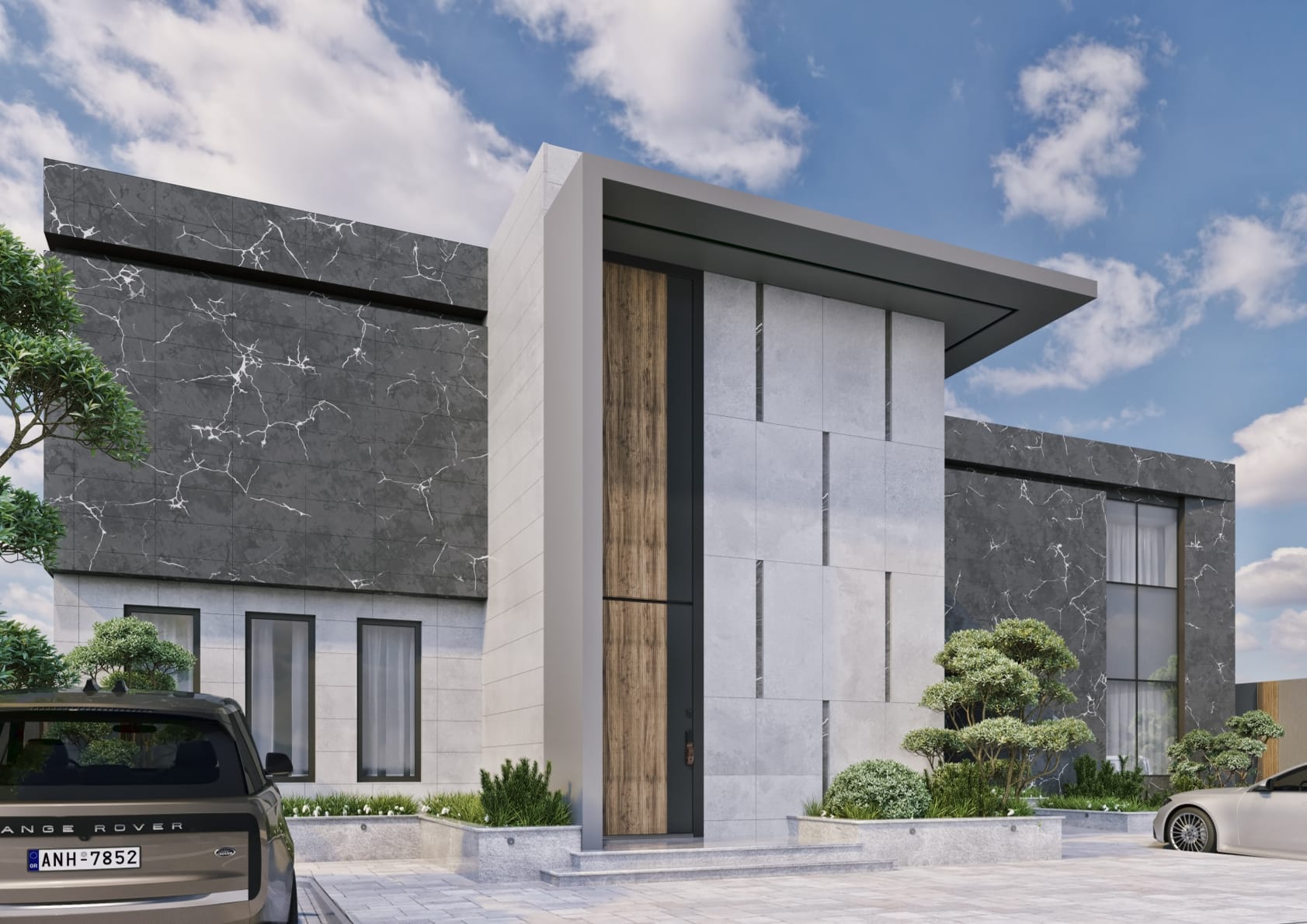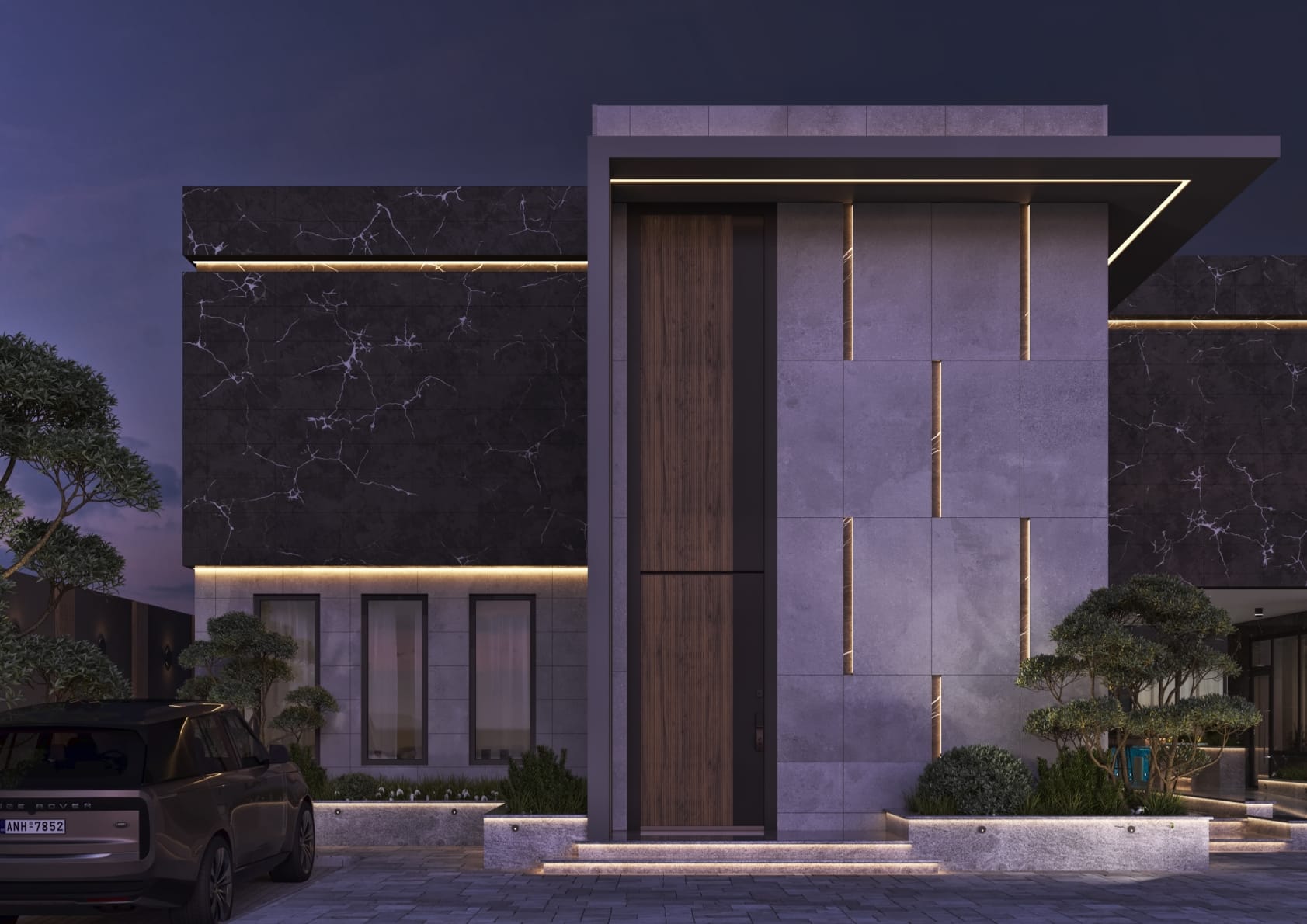 The marble gives the villa an elegant and fashionable touch, and the wood in some parts of the facade lends warmth and nature to the building as they are used with amazing harmony throughout the building's exterior.