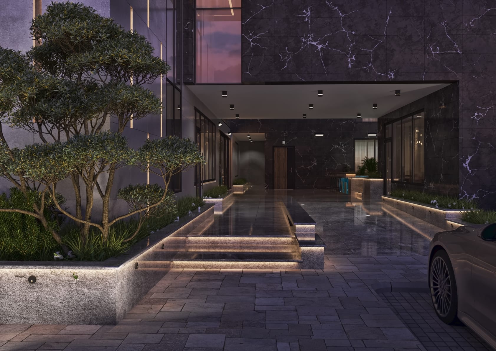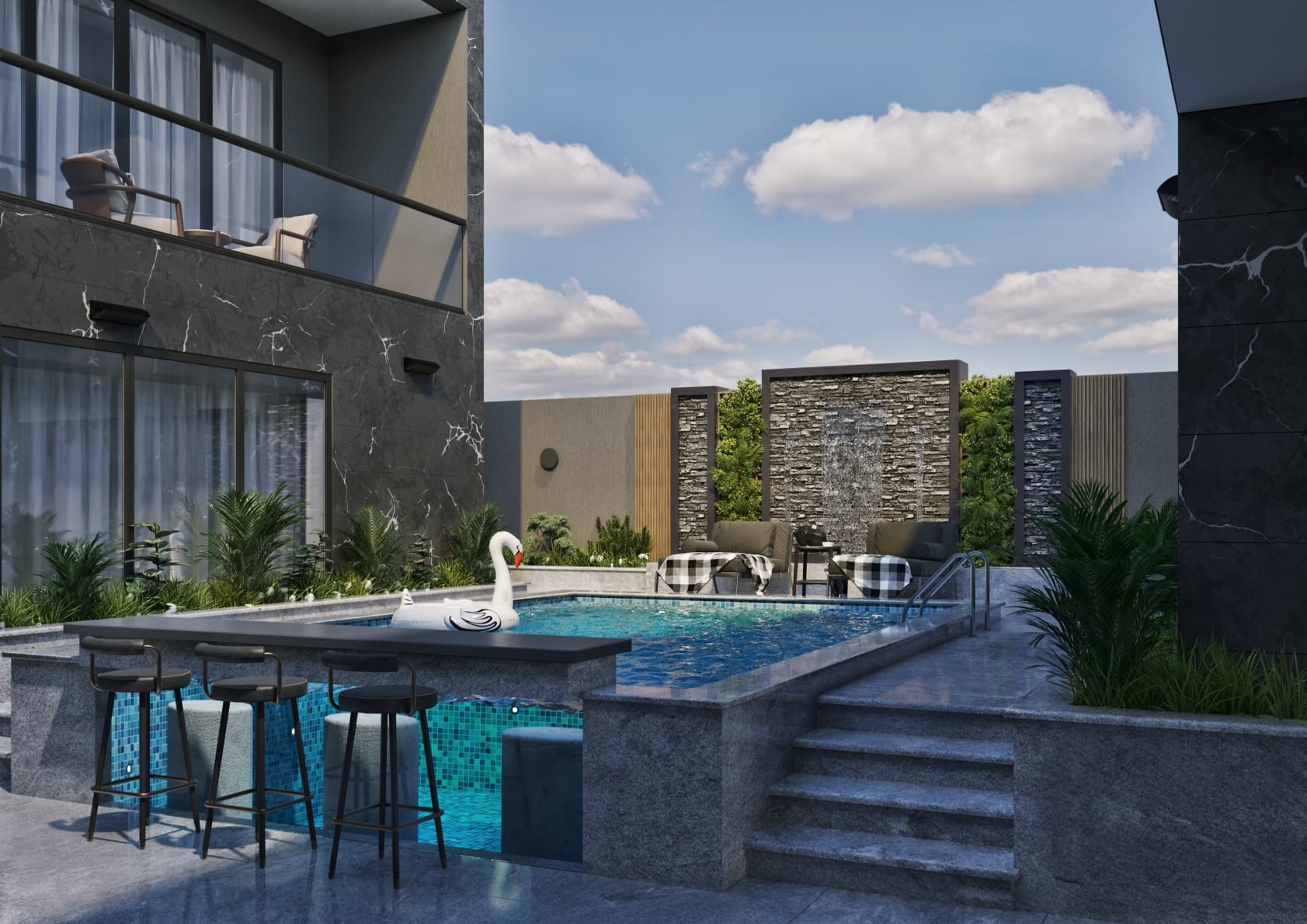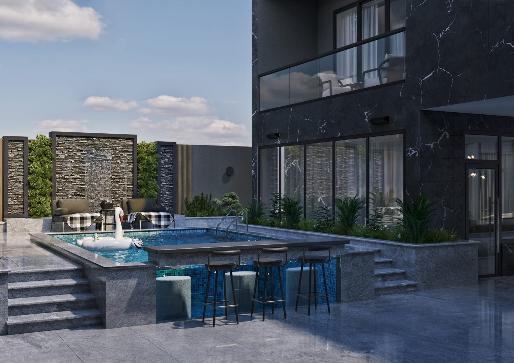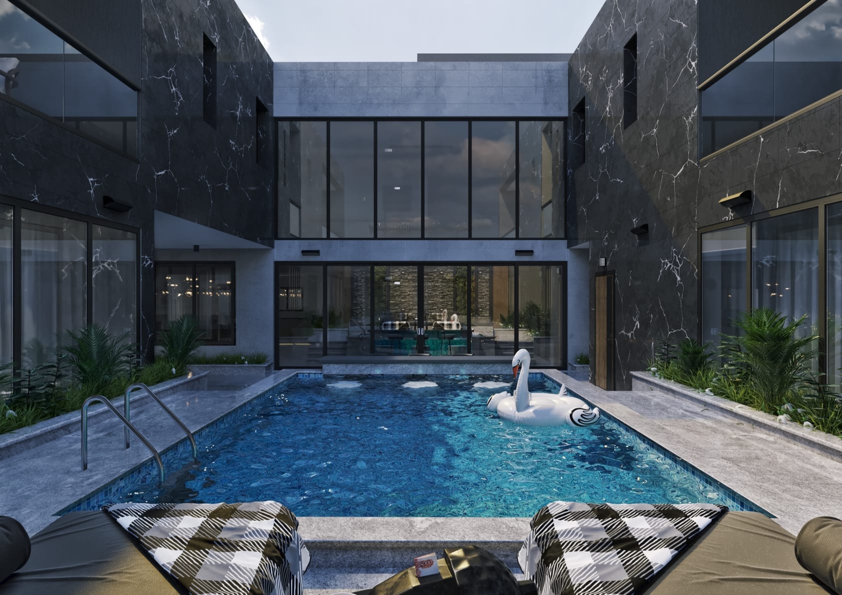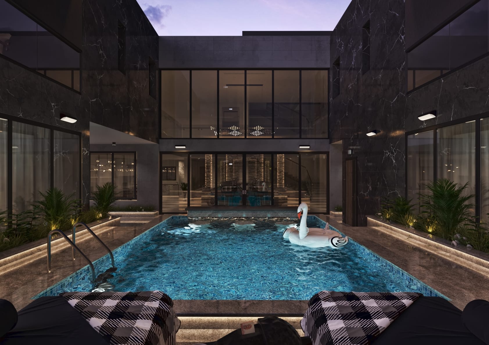 The marble gives the villa an elegant and fashionable touch, and the wood in some parts of the facade lends warmth and nature to the building as they are used with amazing harmony throughout the building's exterior.