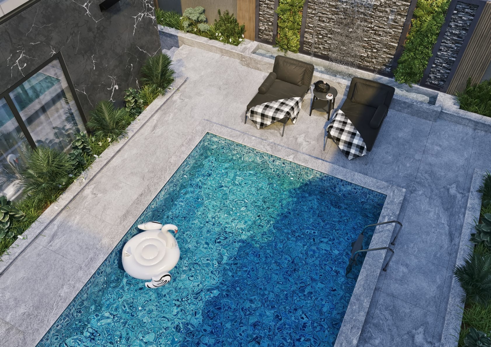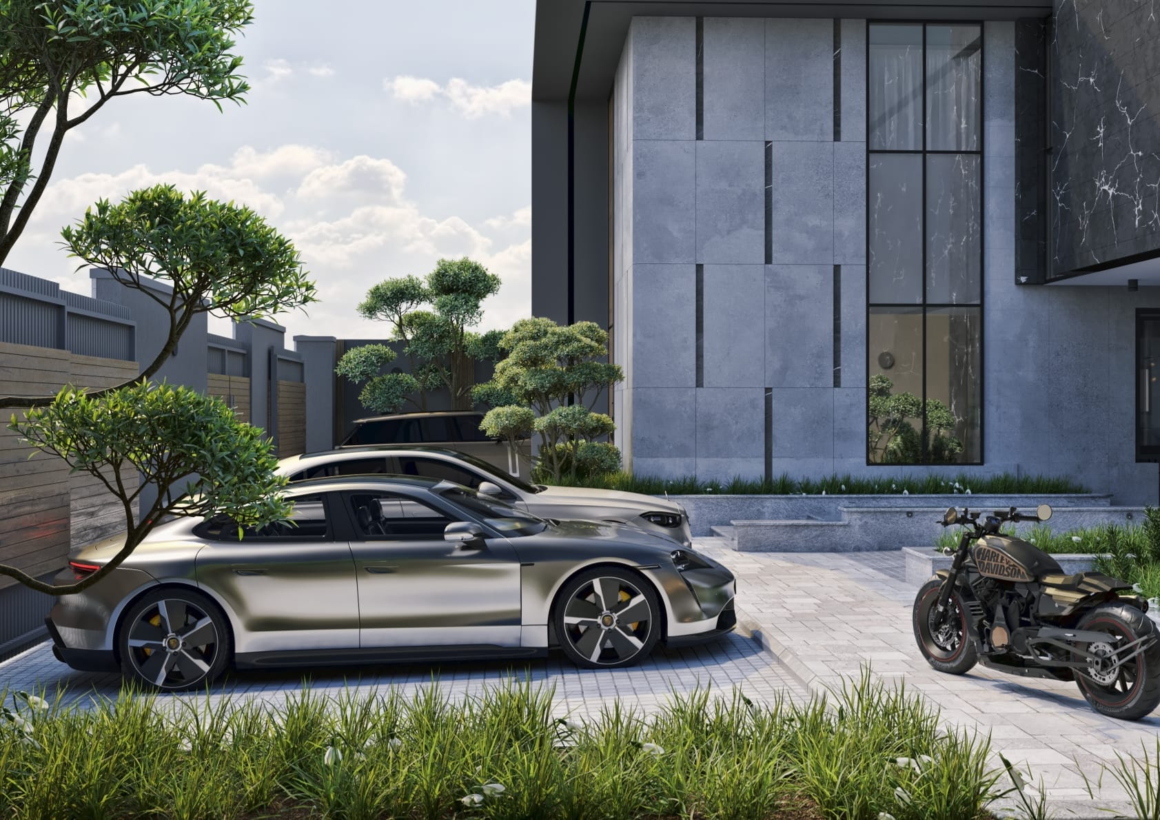 Green plants promote the villa's natural freshness, being carefully coordinated, and cultivated around the exterior to bring visual glamour and a sense of relaxation and nature.