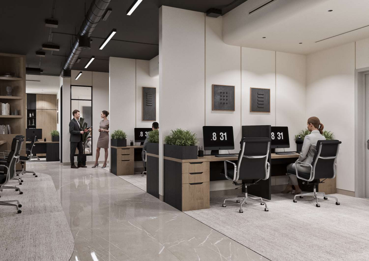 The Office project redefines professional environments with its sleek, contemporary design that balances functionality and aesthetic appeal.