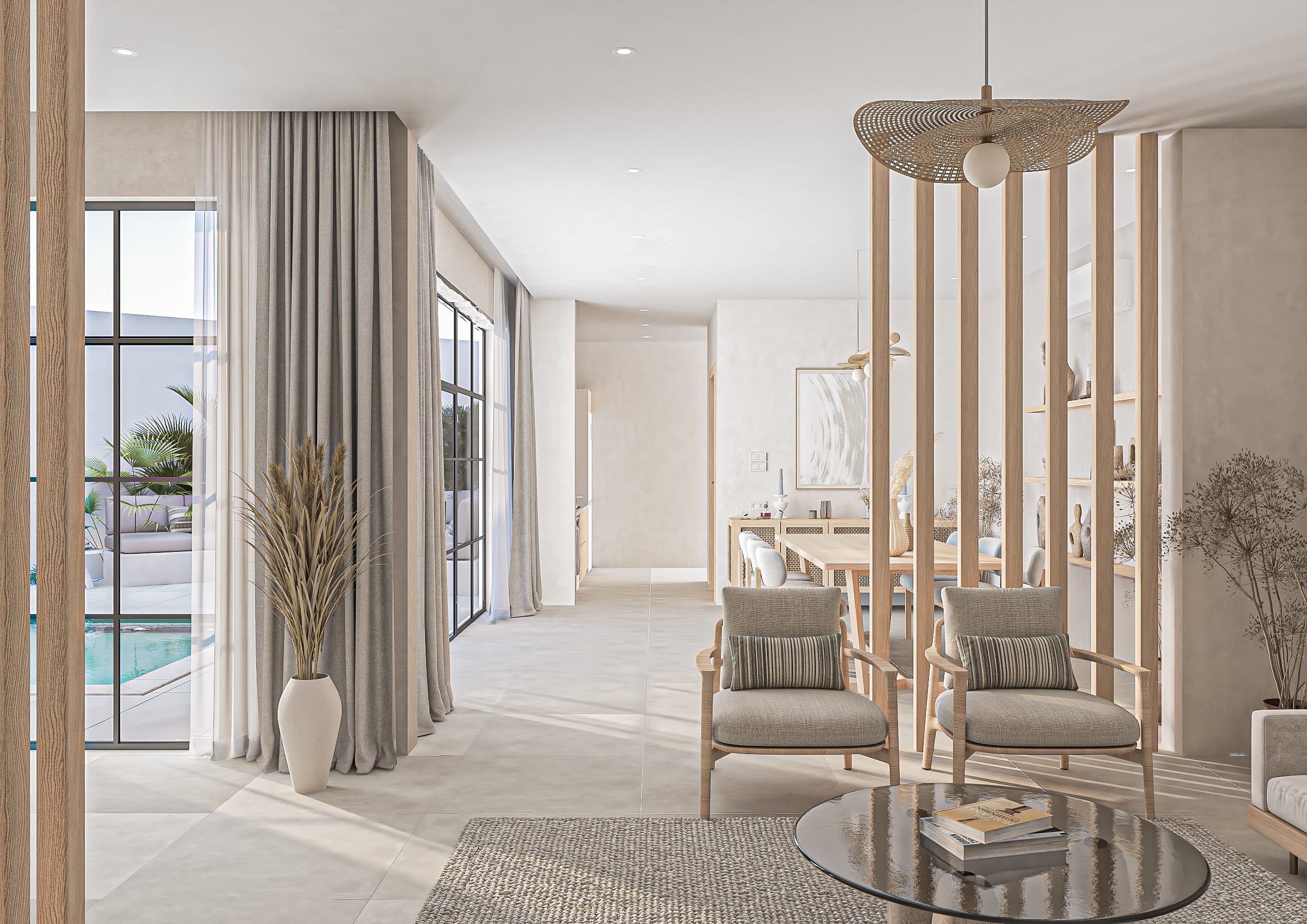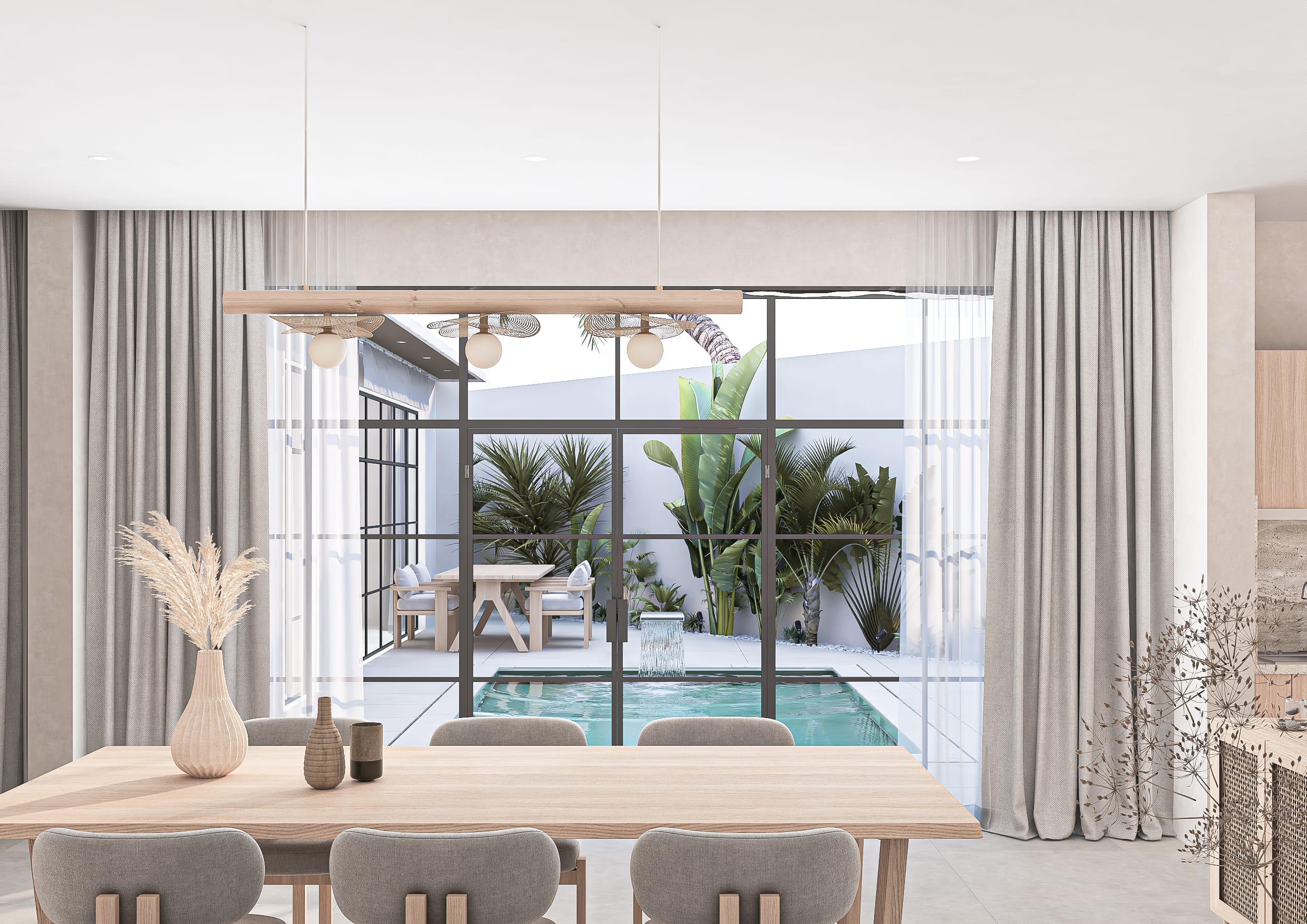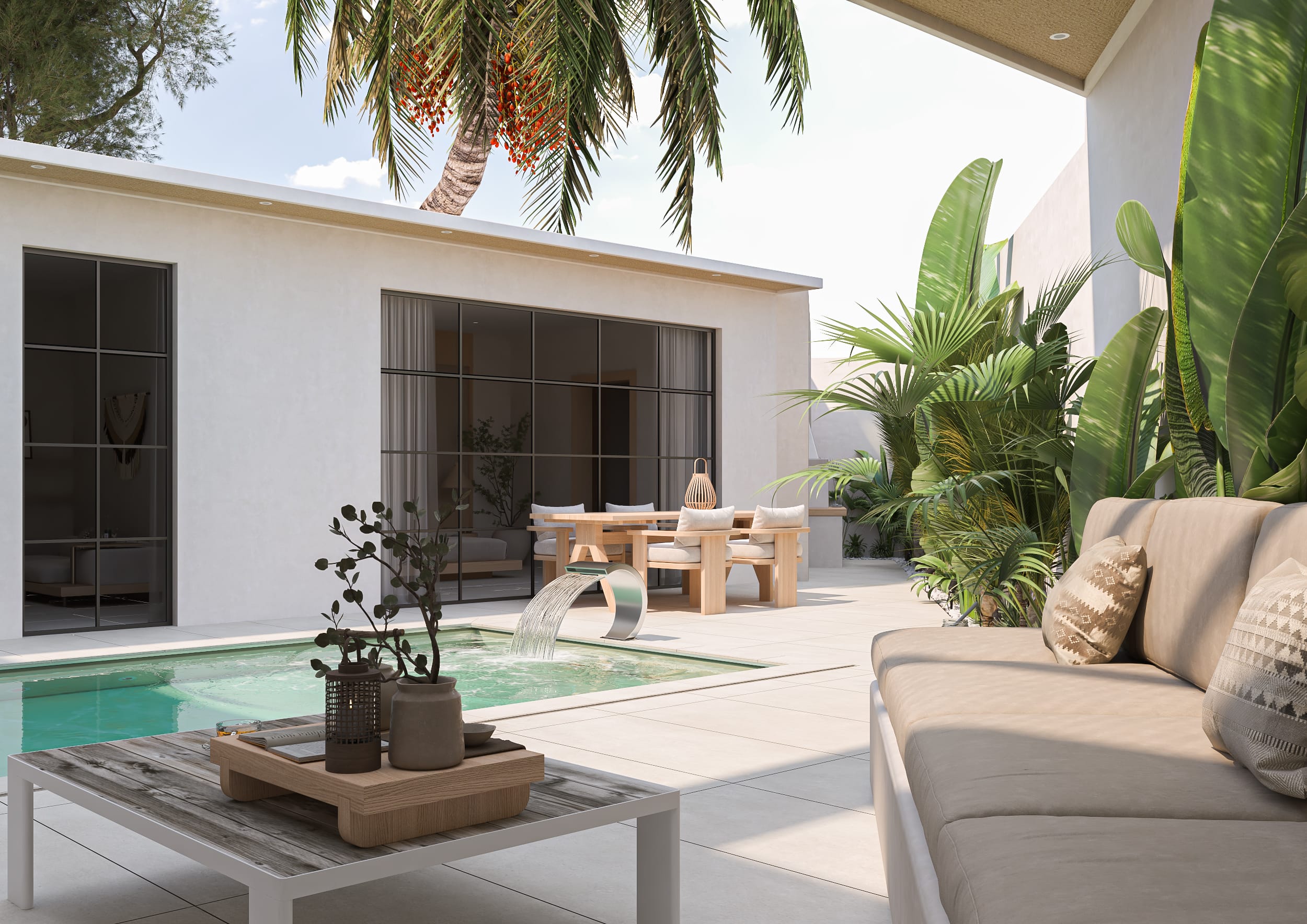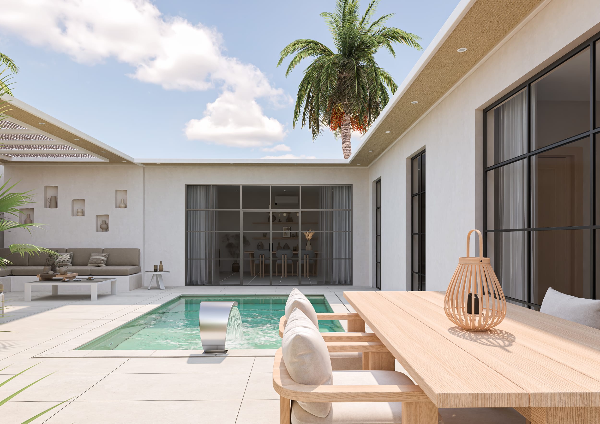 The Chalet project seamlessly blends contemporary design with tropical tranquility, featuring an open-plan living space that merges indoor elegance with outdoor luxury.