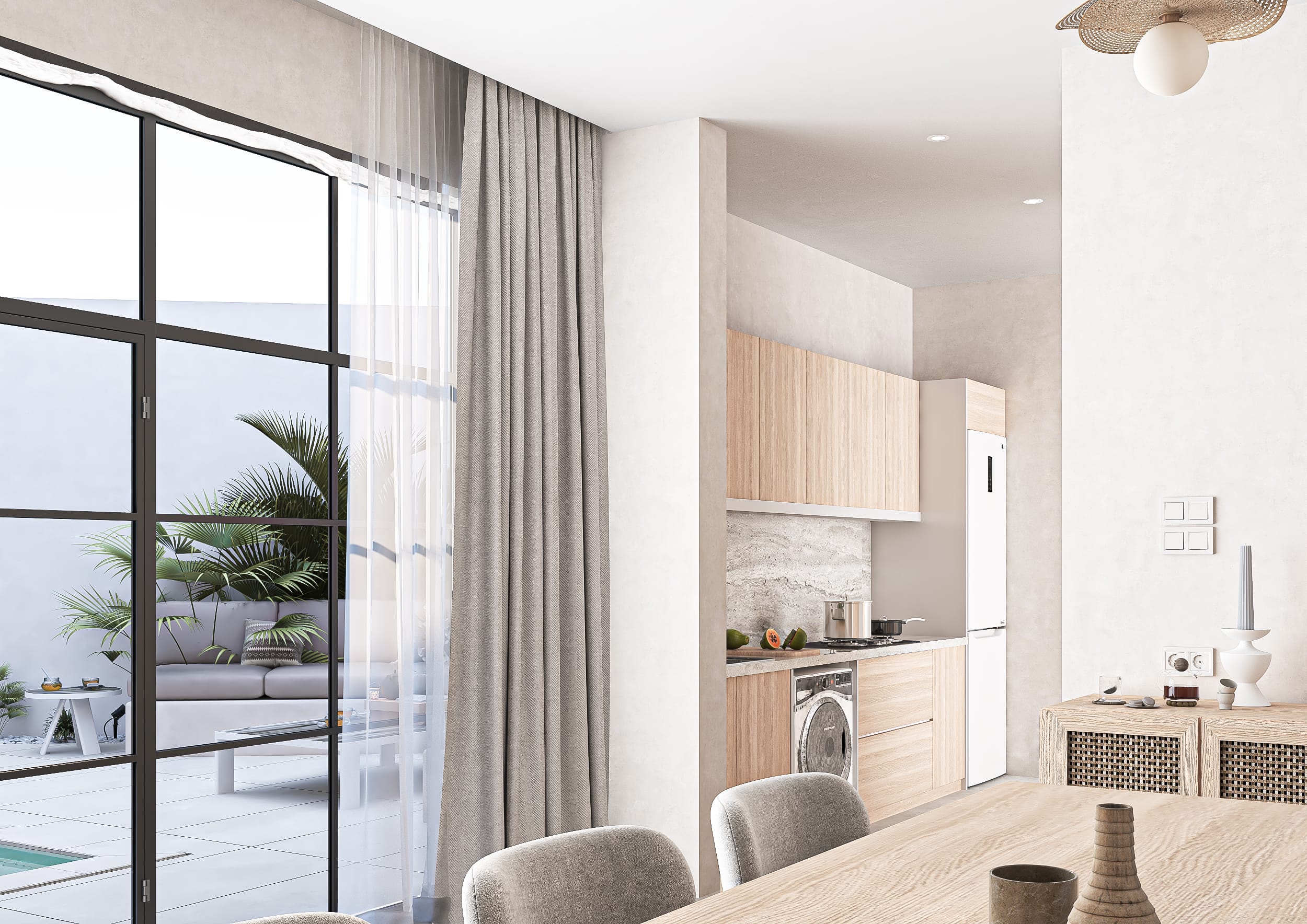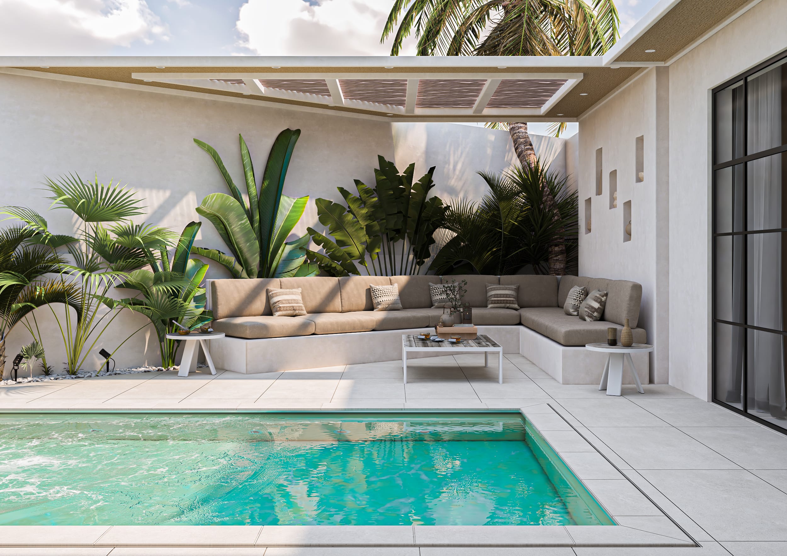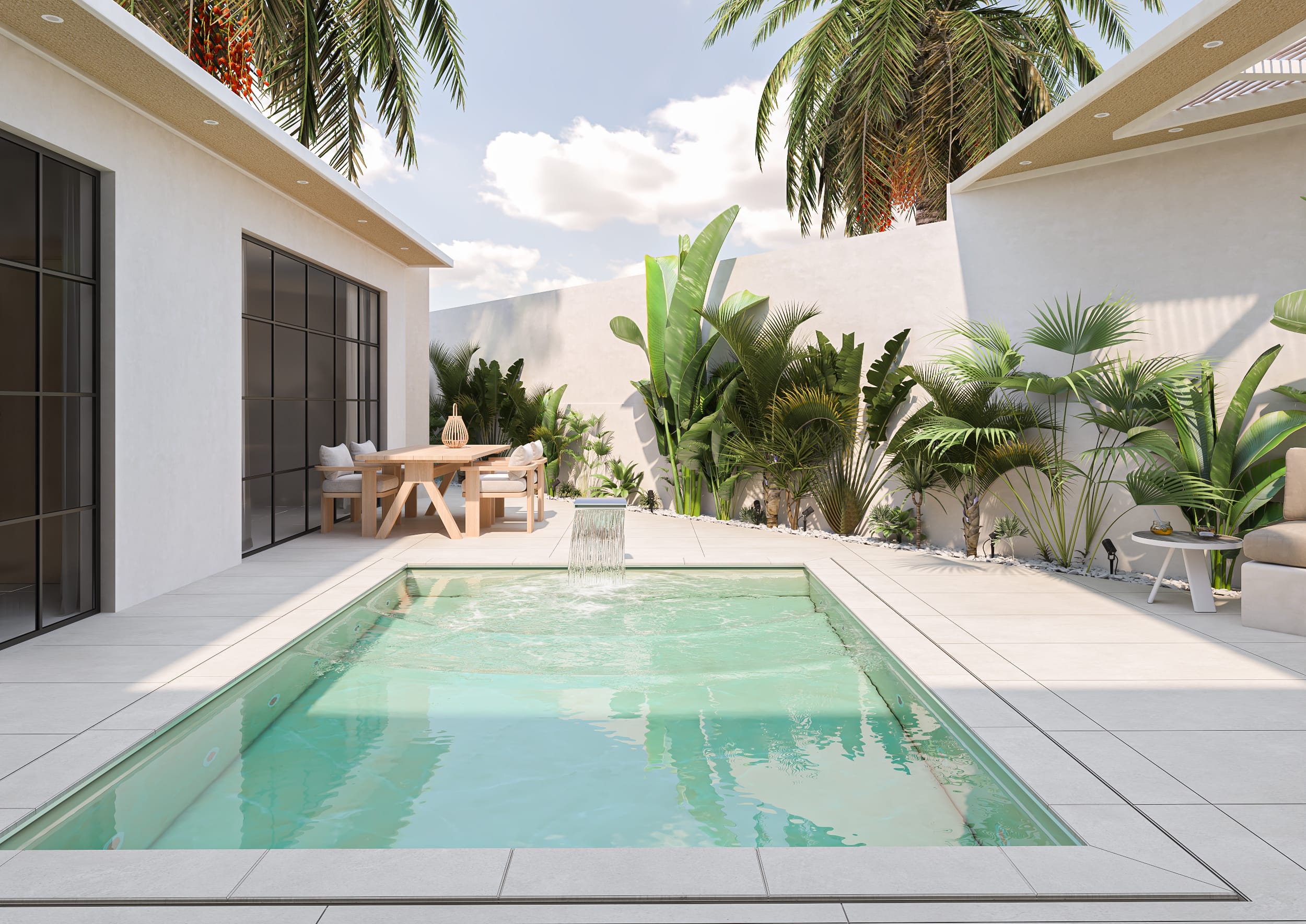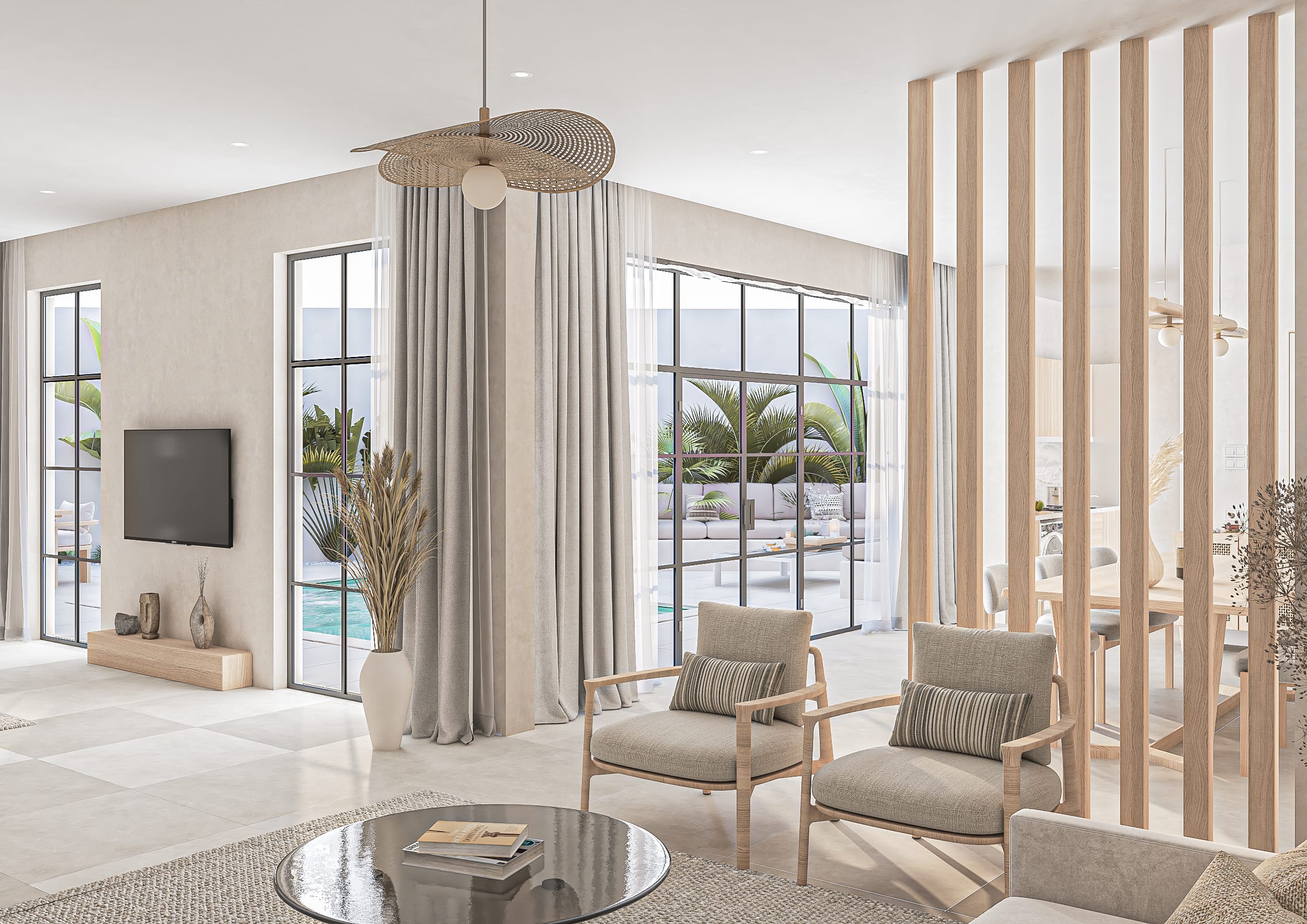 The Chalet project seamlessly blends contemporary design with tropical tranquility, featuring an open-plan living space that merges indoor elegance with outdoor luxury.